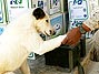 O fuzileiro naval Jesus Serafel “cumprimenta” o cão Thunder durante parada em posto de fornecimento de munição em Dulab, no Iraque, em 15 de maio de 2004