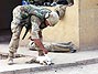 Fuzileiro naval americano brinca com cão durante operação na cidade iraquiana de Balad, em 3 de julho de 2003