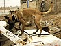 Cão farejador acompanha soldados americanos e iraquianos durante patrulha em Kahn Bani Sahd, no Iraque, em 6 de fevereiro de 2009