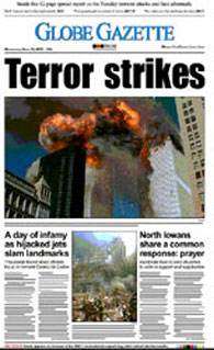 Evento de audiência e abrangência globais, o 11 de setembro povoou as capas de jornais de todo o mundo, massificando o terror e introduzindo novos conceitos no repertório da opinião pública mundial.