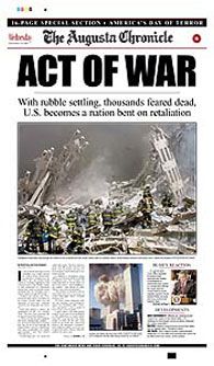 Evento de audiência e abrangência globais, o 11 de setembro povoou as capas de jornais de todo o mundo, massificando o terror e introduzindo novos conceitos no repertório da opinião pública mundial.