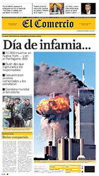 Evento de audiência e abrangência globais, o 11 de setembro povoou as capas de jornais de todo o mundo, massificando o terror e introduzindo novos conceitos no repertório da opinião pública mundial.