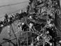 Norte-coreanos se arriscam entre vigas destruídas de ponte sobre o rio Taedong para fugir de Pyongyang