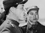 Oficiais dos Estados Unidos (dir.) e da Coreia do Norte (esq.) iniciam negociações para o armistício na aldeia de Panmunjom