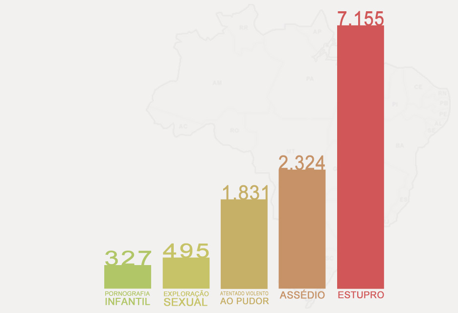 Os casos de violência sexual registrados no sistema público em 2011 mostram que as meninas continuam sendo a maioria das vítimas (83,2%), e o estupro é o crime mais denunciado em 12.132 registros.Ilustração: Arte Terra
