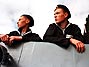 Militares da Marinha russa aguardam para chegar próximo ao local onde o submarino Kursk afundou, em 21 de agosto de 2000