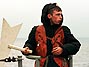Marinheiro segura uma seta a bordo do navio Admiral Chabanenko, próximo ao local onde o submarino Kursk afundou