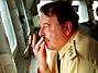 O comandante da Frota do Norte russa, Vyacheslav Popov, observa pela janela do navio militar Admiral Chabanenko enquanto acompanha as buscas, em 24 de outubro de 2000
