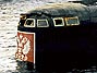 A torre de comando do submarino Kursk aparece na superfície, no porto de Roslyakovo, em 23 de outubro de 2001