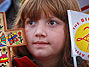 Menina mostra sua religiosidade ao acompanhar a passagem do Papa