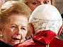 Bento XVI é cumprimentado pela ex-premiê britânica Margaret Thatcher, conhecida durante sua gestão como Dama de Ferro