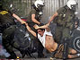 Criança palestina faz o sinal da vitória no porto da Faixa de Gaza durante mergulho pra homenagear vítimas do ataque israelense