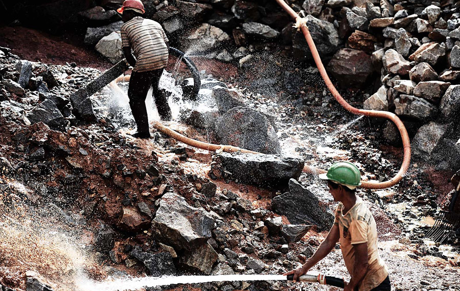 Homens trabalham no garimpo de Lourenço. Foto: Fernando Borges/Terra