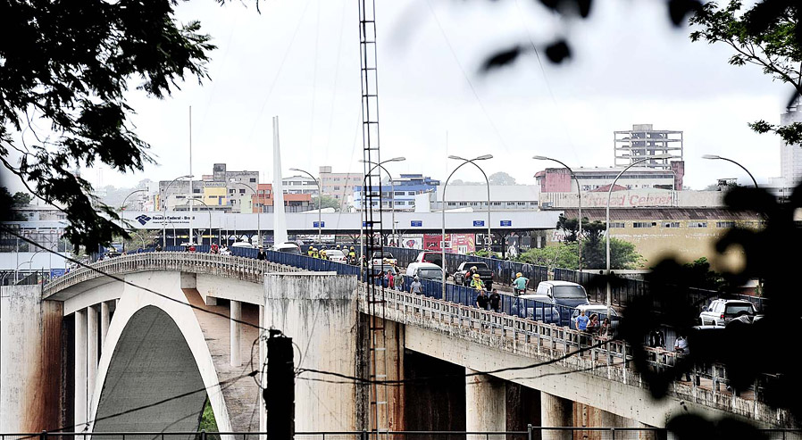 Vista da Ponte da Amizade a partir do Paraguai; ao fundo, a aduana brasileira. Foto: Fernando Borges/Terra