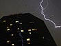 Luz de raio é refletida na fachada de um hotel, na Cidade do México