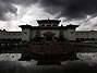 Nuvens escuras cobrem o prédio da Assembleia Constitucional do Nepal, em Katmandu, enquanto eleitores esperam para votar nas eleições do país