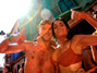 Casal português sorri para fotos durante a festa da Tomatina