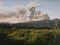 Nuvens de fumaça do vulcão Dukono foram vistas em imagens de satélite 220 km a nordeste a 3,7 km de altitude entre 10 e 12 de abril