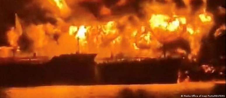 Os petroleiros Safesea Vishnu, com bandeira das Ilhas Marshall, e Zefyros, com bandeira maltesa, foram atacados no Golfo, perto do Iraque, levando os portos petrolíferos do Iraque a interromper completamente as operações, de acordo com autoridades portuárias e a agência de notícias estatal.