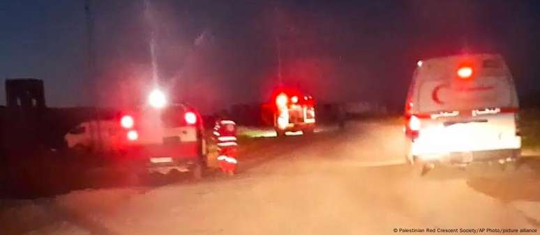 Entre os socorristas que morreram estavam oito funcionários do Crescente Vermelho Palestino, seis membros da agência de defesa civil de Gaza e um funcionário da agência da ONU para refugiados palestinos (UNRWA, na sigla em inglês).
