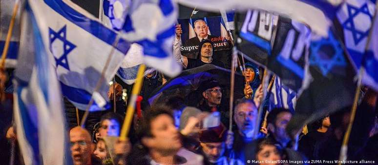 Entretanto, tudo isso provavelmente dificilmente desempenhará um papel em Israel este ano. Os conflitos internos são muito fortes no momento. Há semanas, as pessoas têm saído às ruas para se manifestar contra os planos do governo de Benjamin Netanyahu de reformar o Judiciário, acusando o premiê de tentar enfraquecer a independência desse poder. Embora os planos estejam atualmente em suspenso, os protestos não estão diminuindo.