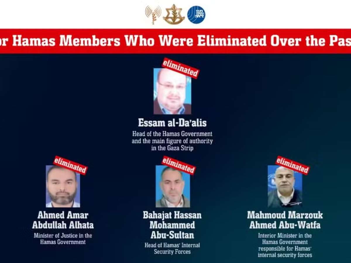 Ainda de acordo com o texto, além de al-Da'alis, há possibilidade de que mais três integrantes do grupo também tenham sido mortos: Mahmoud Marzouk Ahmed Abu-Watfa, ministro de Assuntos Internos, responsável pelas Forças de Segurança Interna do Hamas; Bahajat Hassan Mohammed Abu-Sultan, chefe das Forças de Segurança Interna do grupo; e Ahmed Amar Abdullah Alhata, ministro da Justiça do Hamas.