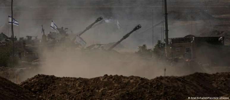 Porta-voz militar israelense afirma ainda que tropas do país alcançaram até a costa do enclave ao sul da Cidade de Gaza, que estaria completamente cercada. Aumenta a tensão na fronteira com o Líbano.O porta-voz das Forças de Defesa de Israel (FDI), Daniel Hagari, afirmou neste domingo (05/11) que o exército israelense dividiu a Faixa de Gaza em duas partes, após a mais recente onda de ataques. Tropas do país também teriam alcançado a costa do enclave ao sul da Cidade de Gaza, que estaria completamente cercada.