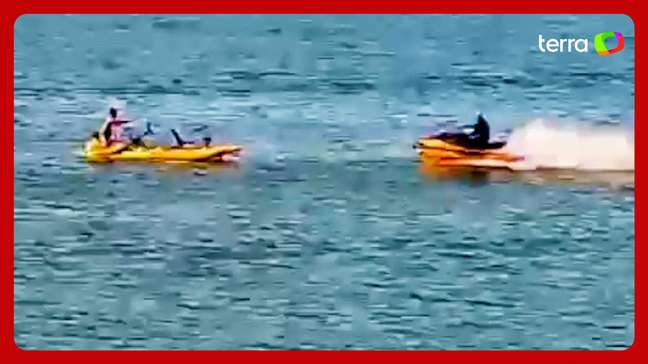 Imagens da câmera de segurança viralizaram nas redes sociais e mostram o momento da batida. No vídeo, é possível ver que um barco pequeno está no lago, enquanto um jet-ski em alta velocidade se aproxima. O jet-ski ultrapassa uma moto aquática e atinge a embarcação.