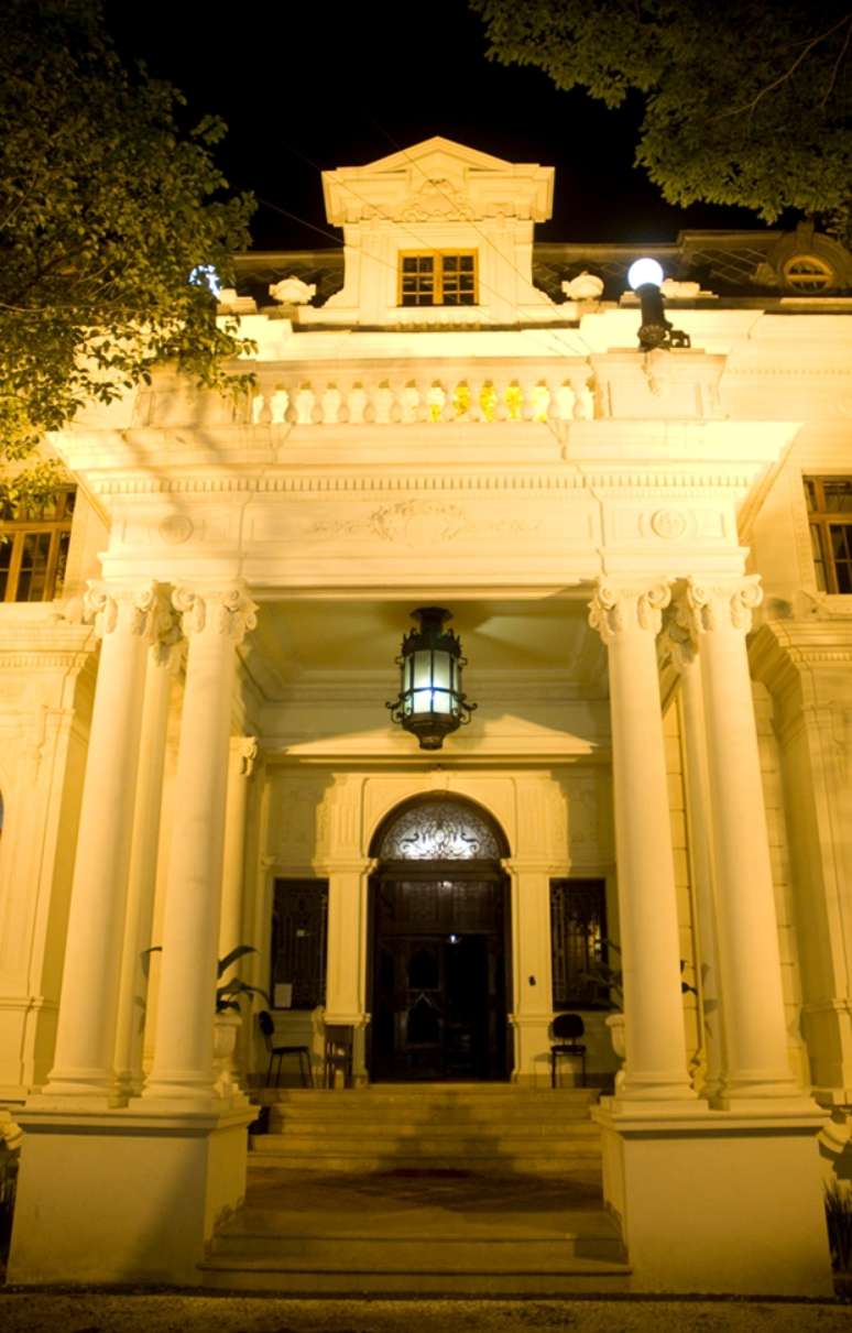 Curiosidades - O palacete foi construído entre 1930 e 1937, seguindo o estilo europeu da época. Pelo trabalho de restauração, descobriu-se que cada quarto tinha originalmente uma pintura diferente, sempre imitando tecido, com estampas típicas de castelos franceses. No centro do primeiro andar, onde ficam os quartos principais, há uma pequena capela inspirada no Mosteiro dos Jerônimos, de Lisboa; o entalhamento na madeira, da escada principal e que leva a esta capela, exibe símbolos religiosos. No subsolo, há um o anfiteatro, com capacidade para cerca de 50 pessoas sentadas e, na sala principal (térreo), um balcão para saraus e apresentações musicais. A história conta que Leôncio de Magalhães não chegou a morar na mansão. Morreu um ano antes da sua conclusão - mas a mulher Ernestina e os cinco filhos, solteiros, moraram ali por cerca de 15 anos. A partir de 1974, o casarão serviu de sede para a Secretaria da Segurança e Delegacia Antissequestro, que preservou a estrutura geral da casa.