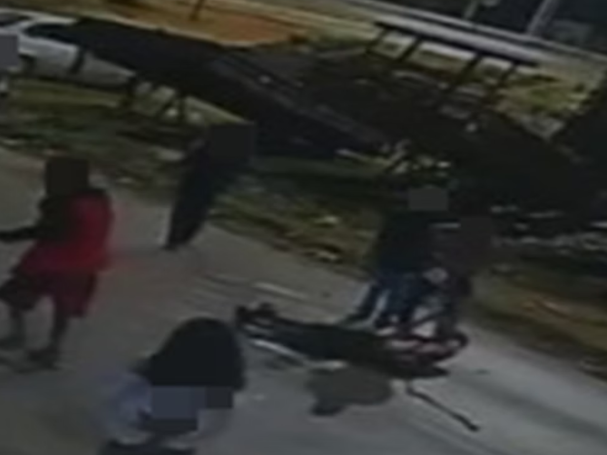 Logo em seguida, mais pessoas se reúnem ao grupinho do agressor e o jovem tenta se defender, porém é surpreendido com várias facadas e espancamentos. Já caído no chão, a vítima continua sendo atacada com muitos chutes, pisadas e socos.