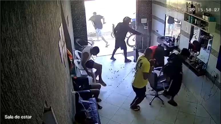 As imagens mostram o momento em que dois homens chegam de motocicleta e entram no estabelecimento. Sem dizer uma palavra, um deles saca a arma e dispara diversas vezes contra Nicollas, que estava sentado na cadeira, no meio de um corte de cabelo. O ataque foi tão rápido que o barbeiro e outros presentes mal tiveram tempo de reagir.