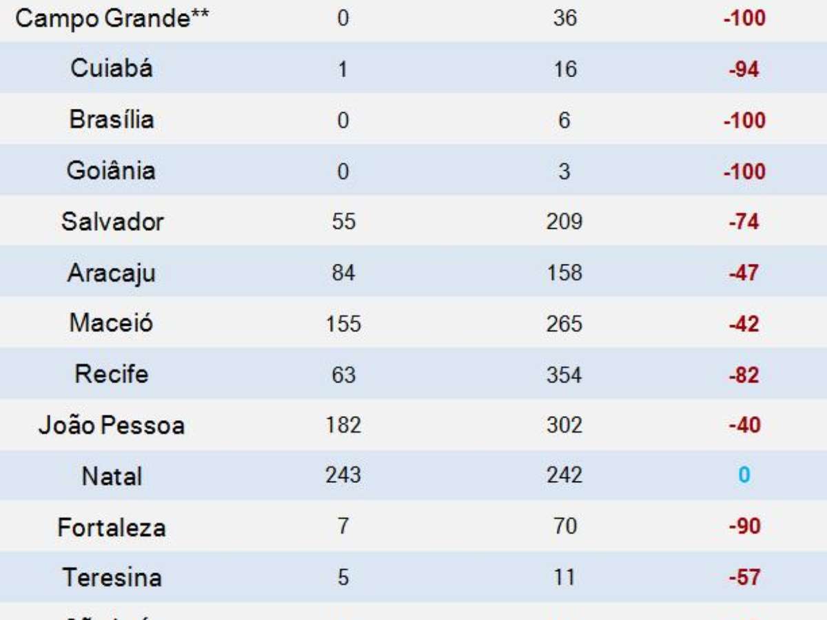 O mês de julho é de seca, com média normal de chuva pequena em várias capitais. É normal não cair uma gota de chuva em Palmas, em Goiânia e em Brasília. Mas na costa leste do Nordeste, julho é um dos meses mais chuvosos, mas vai terminar devendo muita chuva para Recife e Salvador, por exemplo. Em Recife, o INMET registrou apenas 63 mm de chuva em 23 dias, 82% abaixo da média que é de 354 mm, considerando as médias para o período de 1981 a 2010. Em Salvador choveu 55 mm, 74% abaixo da média que é de quase 210 mm.