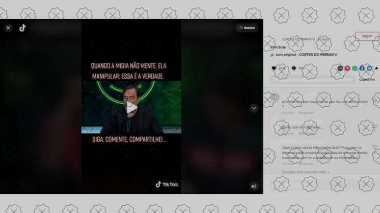 As postagens enganosas contam com 17.143 interações no TikTok e centenas de compartilhamentos no Facebook nesta terça-feira (7).
