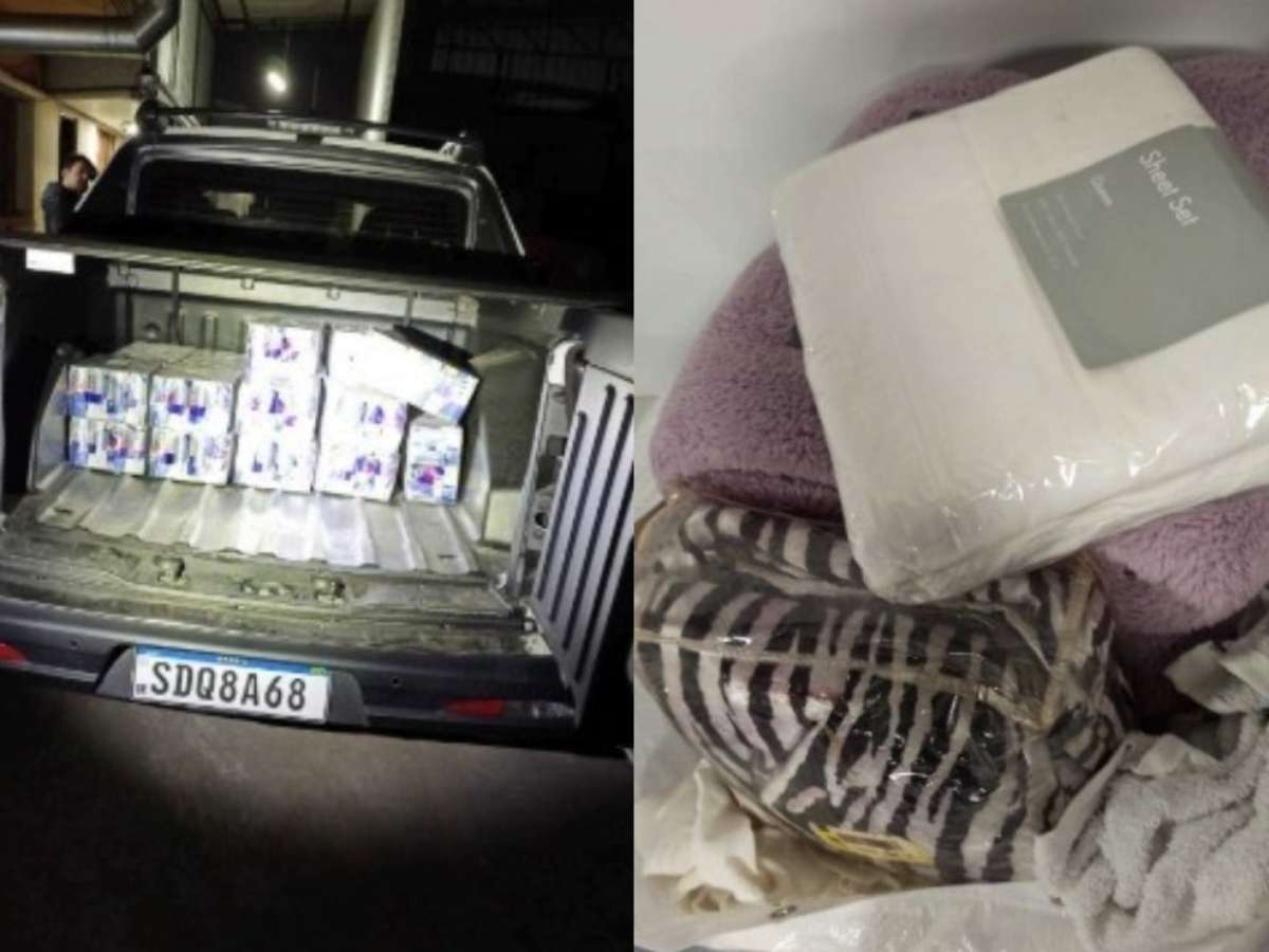Conforme o boletim de ocorrência, dentro da caminhonete e do imóvel estavam 57 fardos de bebida energética, relógios, computadores, televisões, ferramentas elétricas diversas (furadeiras e serras) e outros objetos. O documento diz que todos os produtos não tinham notas fiscais ou qualquer outra comprovação de origem lícita. Uma arma de fogo também foi apreendida.
