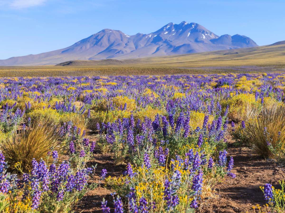 Para aqueles que desejam um cenário um pouco diferente e mais perto do Brasil, o deserto florido no Atacama, Chile, pode ser a escolha ideal. O Atacama é conhecido como o deserto mais árido do mundo, mas em determinados momentos, quando há chuvas acima da média na região, ele se transforma completamente e o solo seco ganha um tapete de flores coloridas que cobrem quilômetros de paisagem.