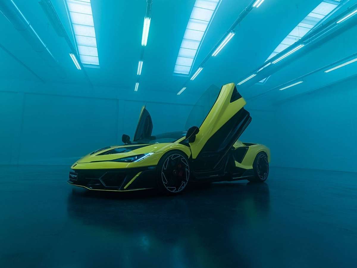 Para compensar o peso adicional do conjunto de baterias, a Lamborghini ajustou a suspensão e adicionou rodas e pneus personalizados para máxima velocidade e desempenho em pista.