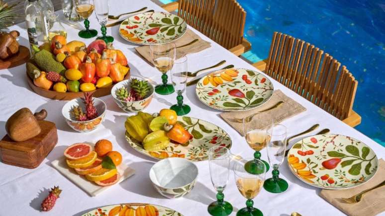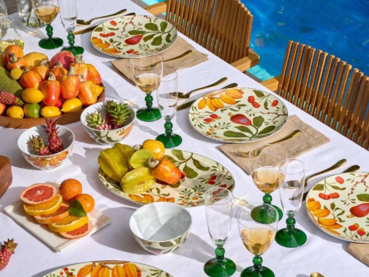 A nova linha de itens para mesa da marca busca representar elementos do Brasil, utilizando ilustrações de frutas nativas em peças de porcelana com acabamento dourado