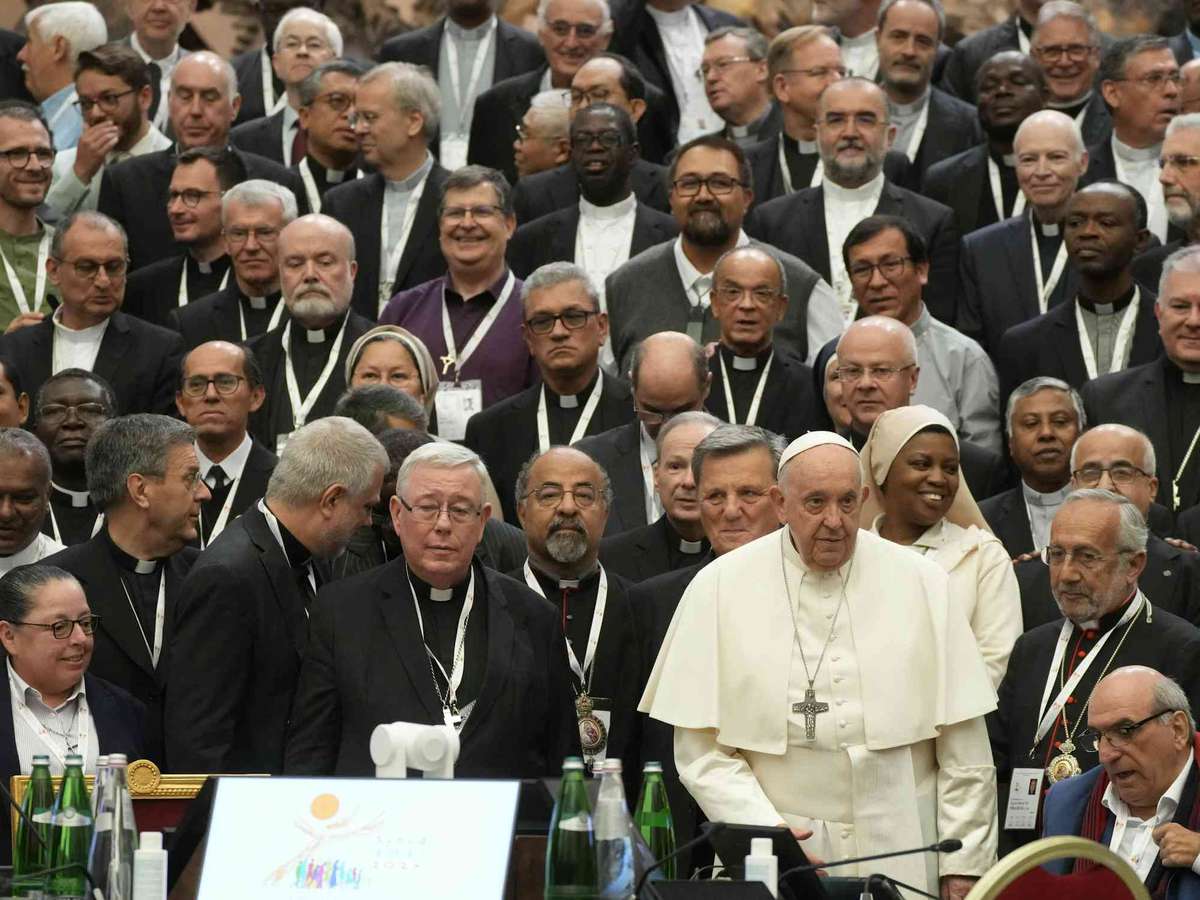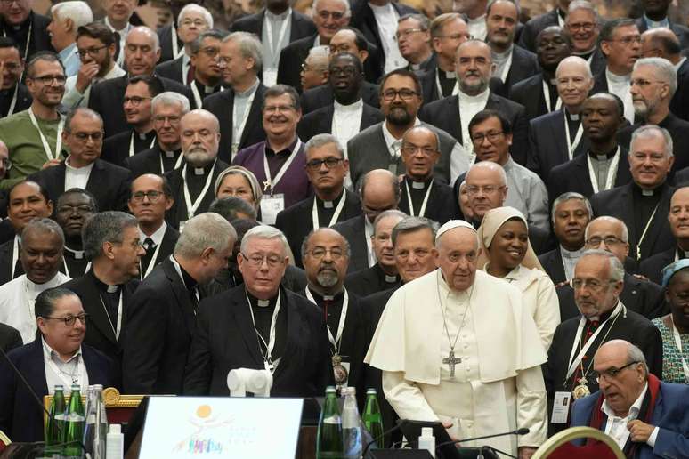 Papa Francisco com os participantes da 16ª Assembleia Geral do Sínodo dos Bispos na Sala Paulo VI no Vaticano em 23 de outubro de 2023.AP Photo/Gregorio BorgiaFrancisco lançou um processo de consulta global de dois anos em outubro de 2022, culminando em um sínodo em Roma em outubro de 2024. Católicos de todo o mundo ofereceram suas percepções e opiniões durante esse processo. O sínodo discutiu muitas questões, algumas das quais foram controversas, como abuso sexual clerical, a necessidade de supervisão dos bispos, o papel das mulheres em geral e a ordenação de mulheres como diáconas.