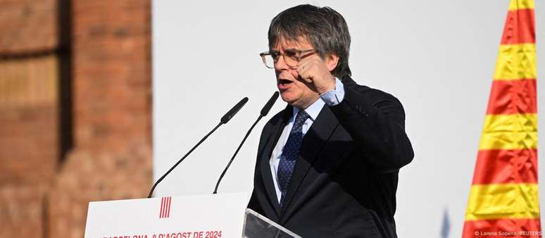 Puigdemont, foragido da justiça espanhola desde 2017 por ter declarado unilateralmente a independência da Catalunha, tem um mandado de prisão por crime de peculato, que não consta da lei de anistia de que beneficiaram outros apoiadores da independência.