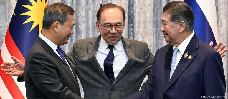 "Este é um primeiro passo vital para a desescalada e a restauração da paz e da segurança", disse Anwar em coletiva de imprensa na capital administrativa da Malásia, Putrajaya, acompanhado pelo primeiro-ministro interino tailandês, Phumtham Wechayachai, e pelo premiê cambojano, Hun Manet.