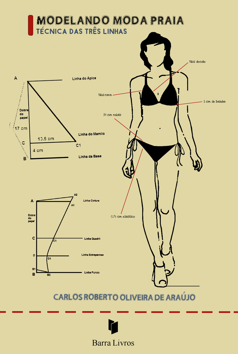 O autor do livro "Modelando moda praia: técnica das três linhas", Carlos Roberto Oliveira de Araújo, utilizou de sua experiência docente, quando observou as dificuldades dos iniciantes no processo de modelagem, para elaborar esta obra, na qual apresenta técnica simples para elaboração das peças mais requisitadas em beachwear nas praias brasileiras, sem ter que passar pelo processo de construção da base no bidimensional, tridimensional e de cálculos sofisticados.