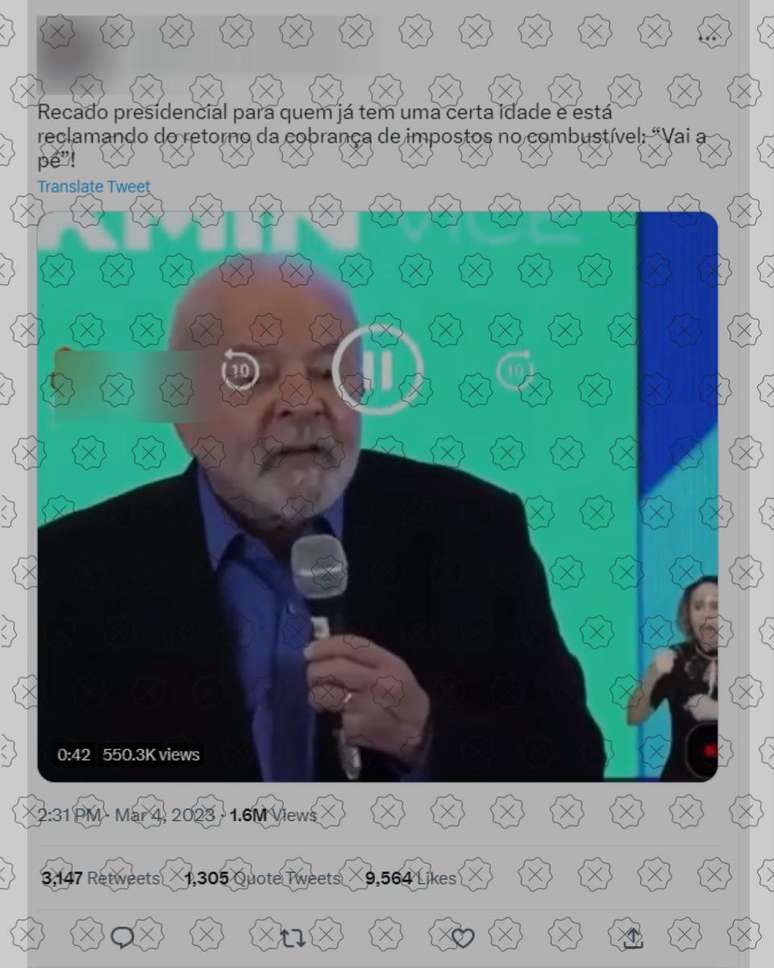 Lula não disse que idosos que reclamam do preço dos combustíveis devem andar a pé