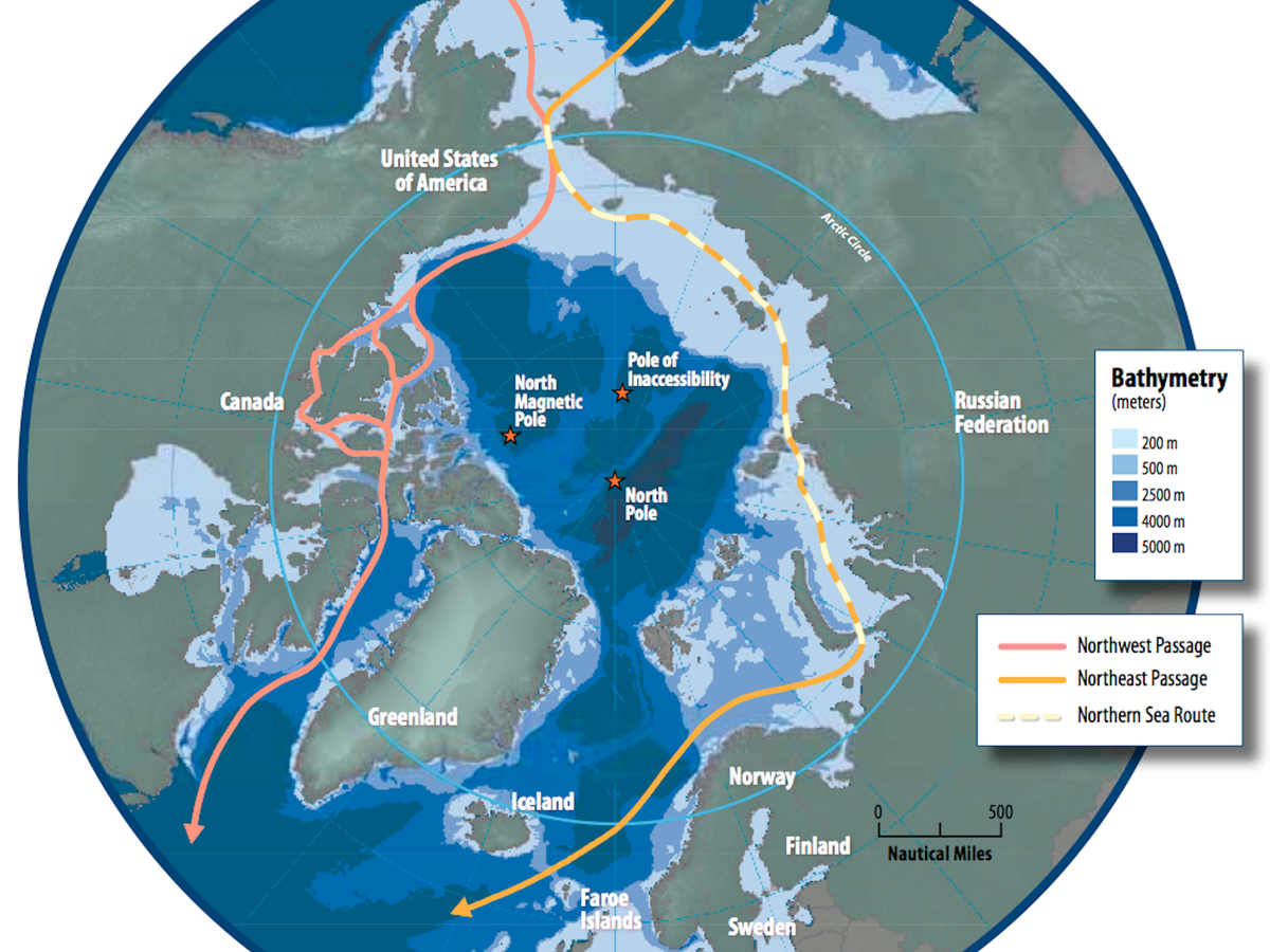 À medida que a cobertura de gelo marinho do Oceano Ártico diminui, rotas marítimas que antes eram intransitáveis durante a maior parte do ano estão se abrindo.