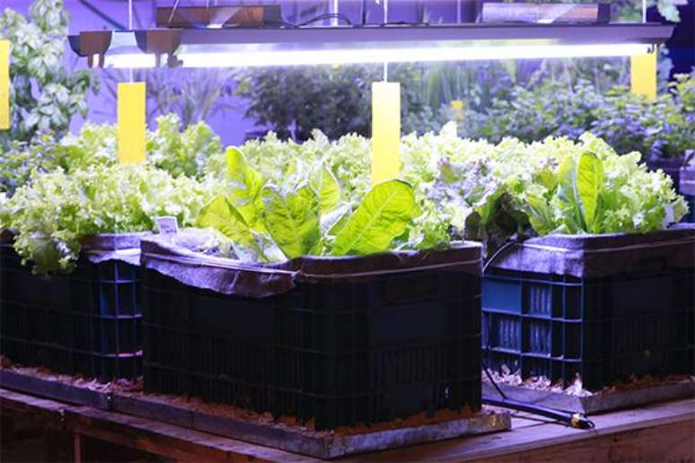 Luz artificial e lixo dão vida a horta subterrânea em SP