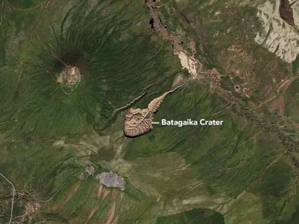 A cratera de Batagaika, localizada na Sibéria, cresce em ritmo assustador, de até um milhão de metros cúbicos por ano, devido ao derretimento do permafrost, uma camada subterrânea da terra, composta por gelo, rochas e sedimentos. Conhecida como "portal do inferno", a cratera foi estudada por um conglomerado de cientistas alemães e russos.