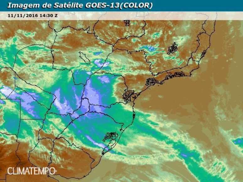Grandes áreas de instabilidade se espalham sobre o Sudeste e sobre o Centro-Oeste do Brasil a partir deste sábado e vão manter também o estado de São Paulo com muita nebulosidade e condições para chuva até o dia 14 de novembro.