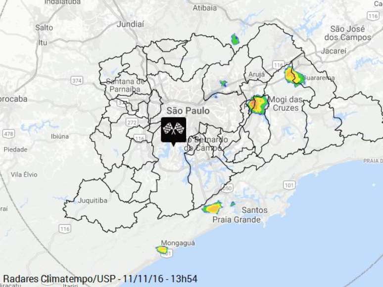 As pancadas de chuva no estado de São Paulo começam durante a tarde e devem se prolongar pela noite. Há possibilidade de algumas pancadas de chuva moderadas a fortes, mas a chuva não deve durar muitas horas.