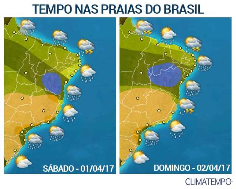 Abril começa com tempo instável em praticamente todo o litoral do Brasil.