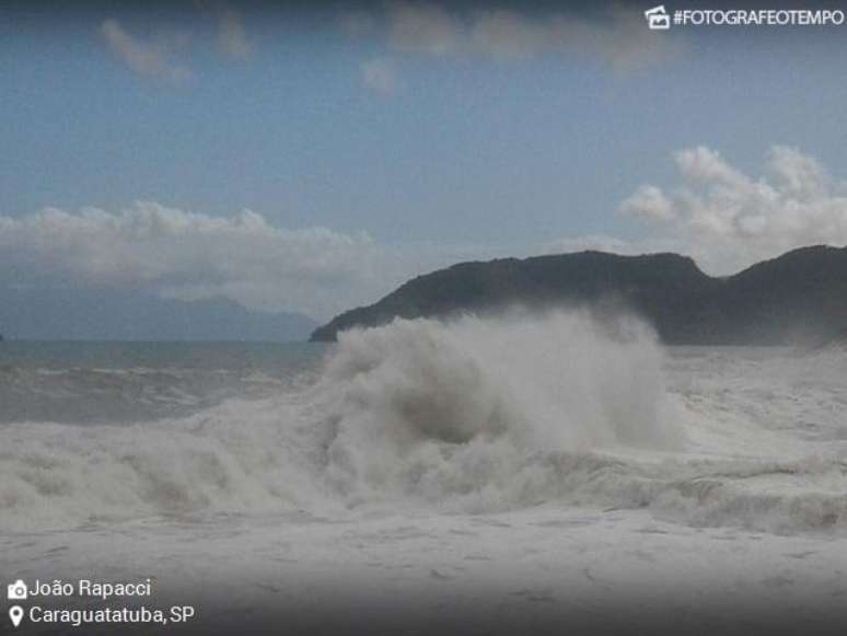 As imagens mostram a agitação do mar no dia 29 de outubro na região de Caraguatatuba, no litoral norte de São Paulo.
