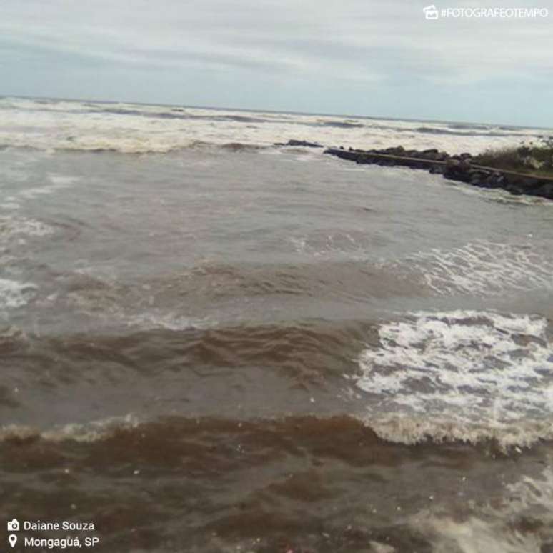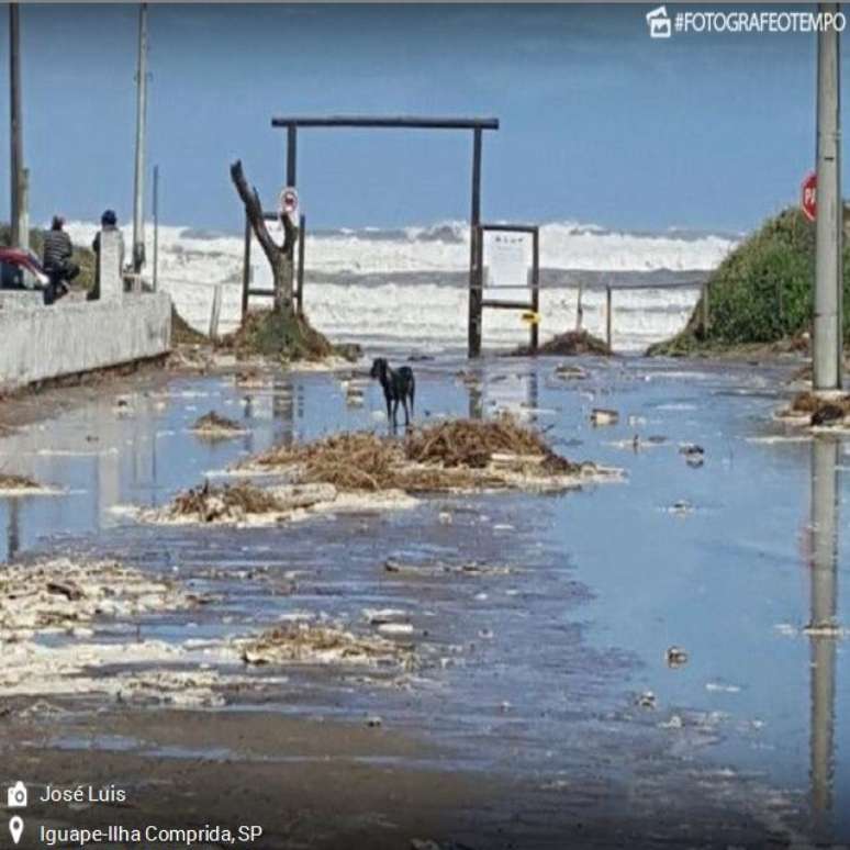 As imagens mostram a agitação do mar no dia 28 de outubro no litoral de São Paulo, na região de da Ilha Comprida, Mongaguá, de Juquehy.